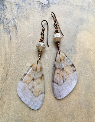 | I've been in a moth mood this month! Pendant and larger ceramic beads by Gaea with a mix of other gemstone and ceramic beads on leather and brass. |